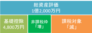 もっとも一般的で、多くのオーナー様が選んでいる方法です。毎月決まった金額を金融機関の定期預金として積み立てていくシンプルな仕組みです。定期預金でお金を貯めた場合、総資産のうち基礎控除を超過する部分が相続税の課税対象となります(図1)。