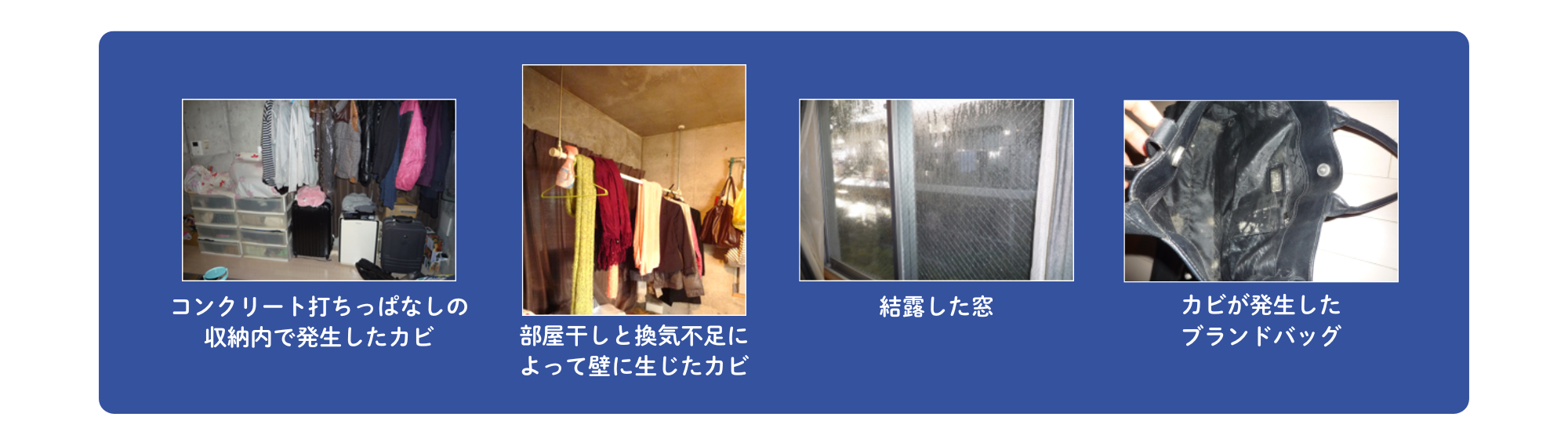 カビの発生には換気不足などの入居者起因のものと、断熱性能の不足による建物起因の両側面があります。居室内についてはご入居者様によって使い方が違うため、判断も簡単ではありません。