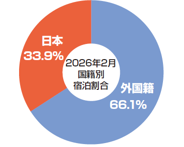 ミノラス不動産ではAirbnbとBooking.comに掲載しています。2月の申込割合は、Airbnb約75%、Booking.com約25%でした。これについて、その66.1%を外国籍の方が占める結果となりました(下のグラフ2参照)。