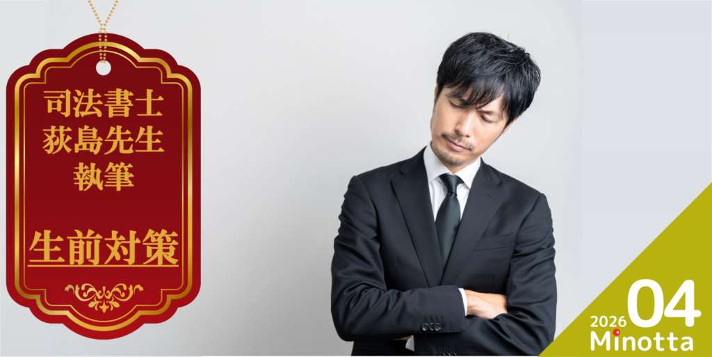司法書士・行政書士ゆかり事務所 所属の荻島一将(おぎしま かずまさ)先生です。ミノラス不動産が毎月発行している不動産情報誌「Minotta」にて、相続対策や生前対策について、わかりやすく執筆・解説いただいています。