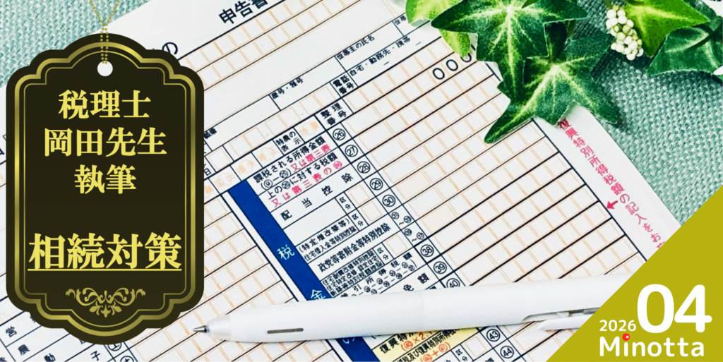 ミノラスホープ株式会社 所属・税理士の岡田 祐介(おかだ ゆうすけ)先生です。ミノラス不動産が毎月発行している不動産情報誌「Minotta」にて、相続における税金について、わかりやすく執筆・解説いただいています。