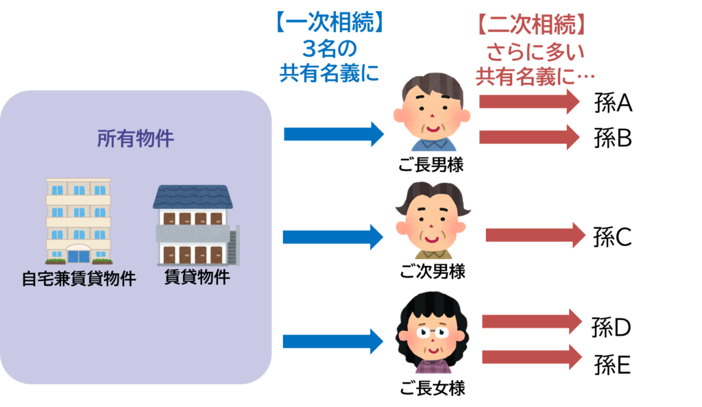また、一次相続で問題がなくても二次相続で共有者の数が増える可能性もあります。すると、親族であっても疎遠になったり、相手に配偶者が付いたりといった変化もあるでしょう。関係性が複雑化することで、意見の相違があると揉めやすく、一次相続時よりも解決が難しくなってしまいます。