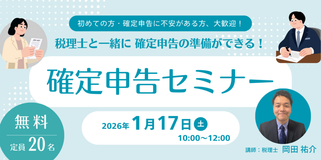2026年1月17日(土)10時より、講師に税理士・岡田祐介先生をお迎えし、【確定申告セミナー】開催いたします。毎年多くのオーナー様にご参加いただいている人気の特別セミナーです。