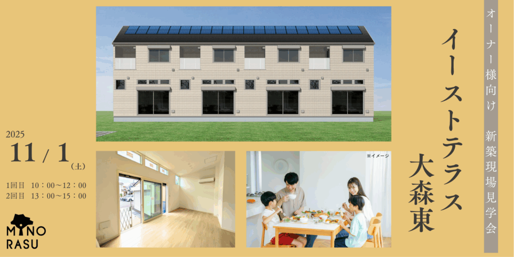 2025年11月1日に、イーストテラス大森東にて新築現場見学会を開催いたします。